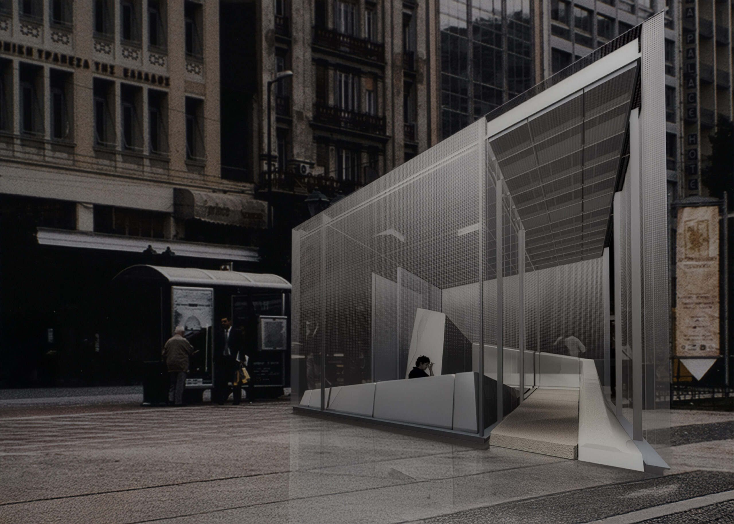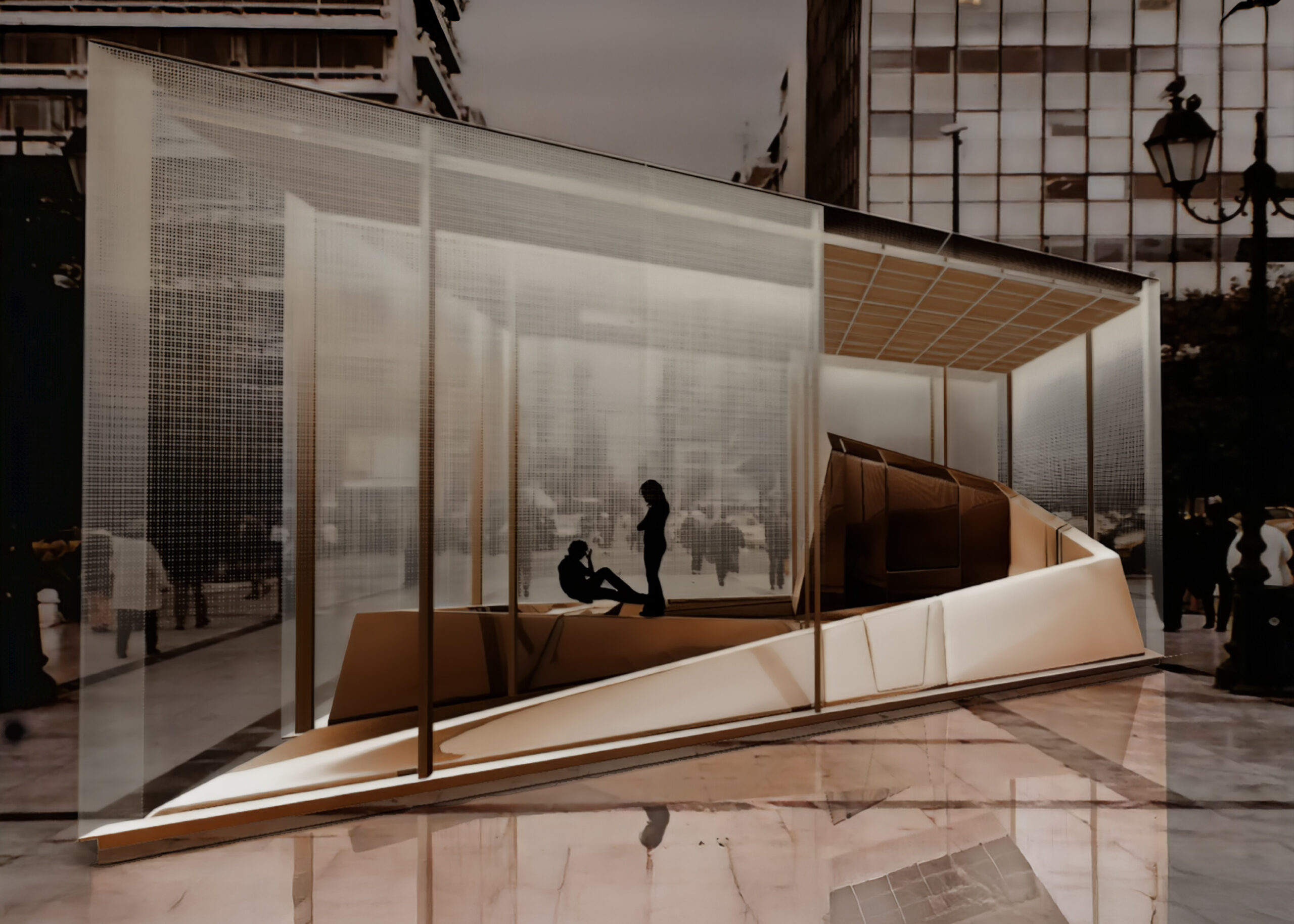A glass enclosure frames the city as artifact, jewel, and backdrop. Like Lycabettus Hill or the Acropolis, the transparent box elevates Athens into exhibition, controlling light, sound, and shade while remaining formally unobtrusive. The city is refracted through glass, simultaneously obvious and enigmatic, a shopfront window onto collective memory.