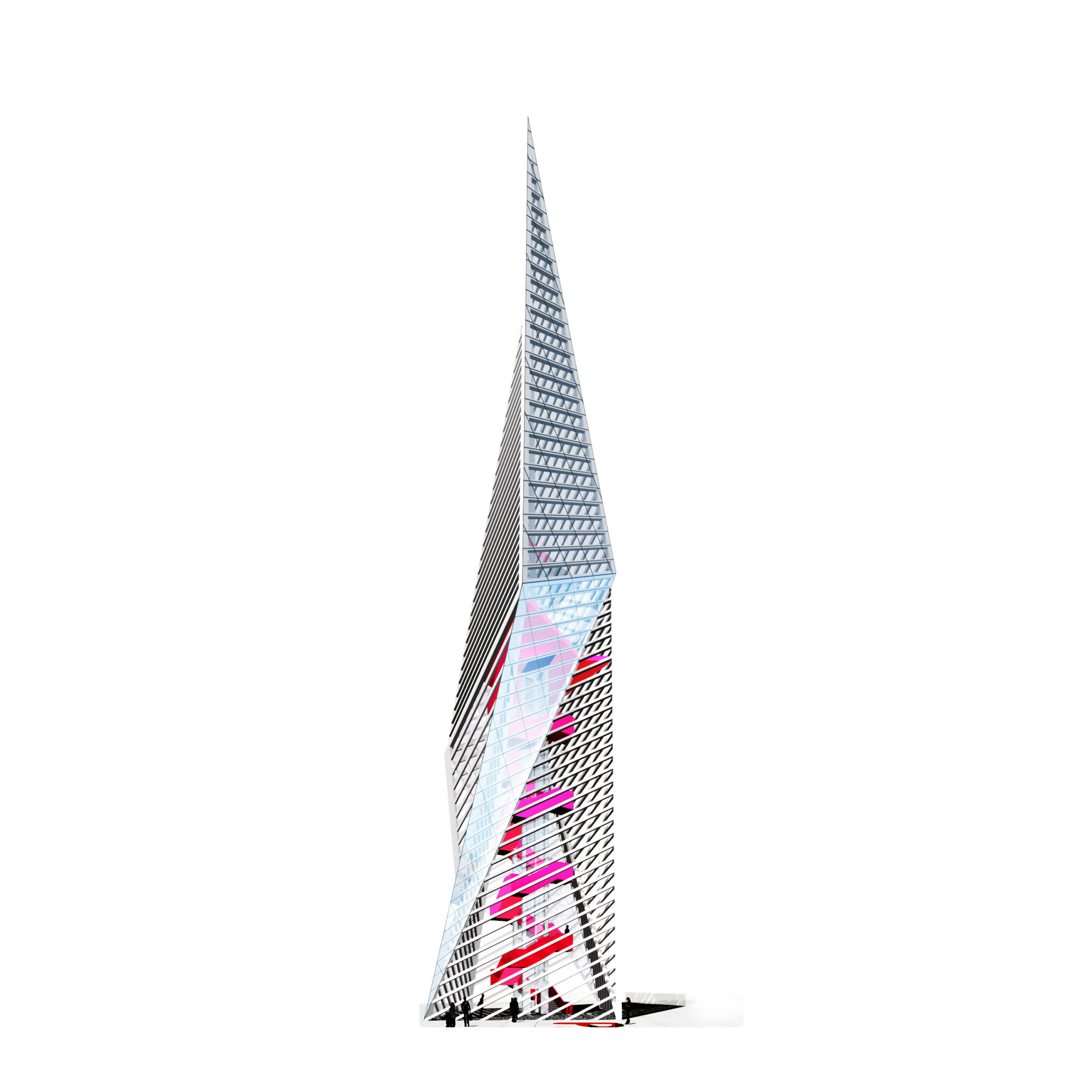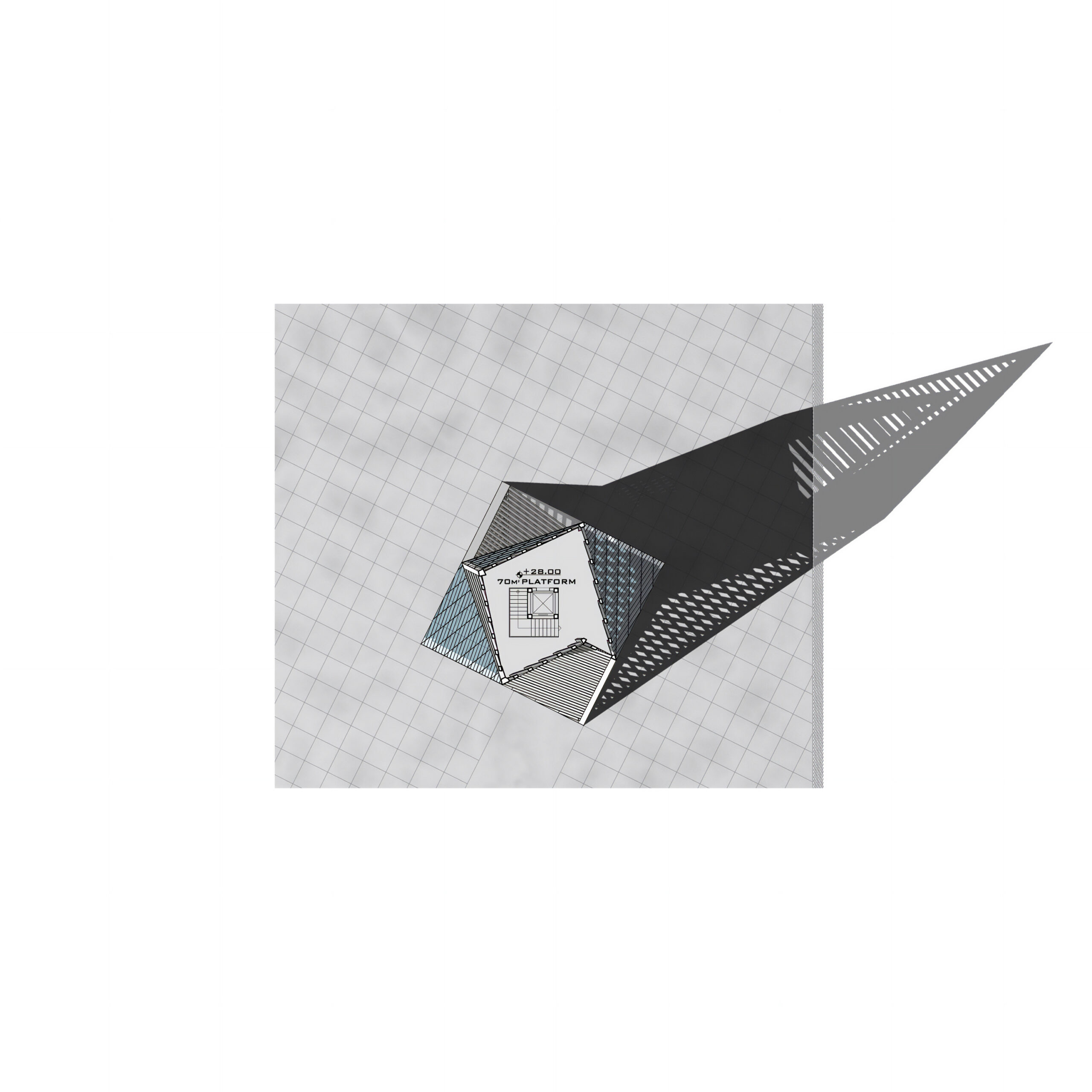 Reminiscent of the two revolutionary French architects, Ledoux and Boullee in their approach to the architectural ideal made through geometry, the landmark’s structure is restricted to the use of simple geometrical shapes. In plan, a perfect square in the stationary state of an archetypal shape outlines the landmark’s base. The project’s twirling main body involves the combination and distortion of simple geometric forms through addition and subtraction into a more complex evocative variation on the gothic stained glass window. The playful nature of its shape breaks its stationary state encapsulating the notion of “l’amour des jeux”.