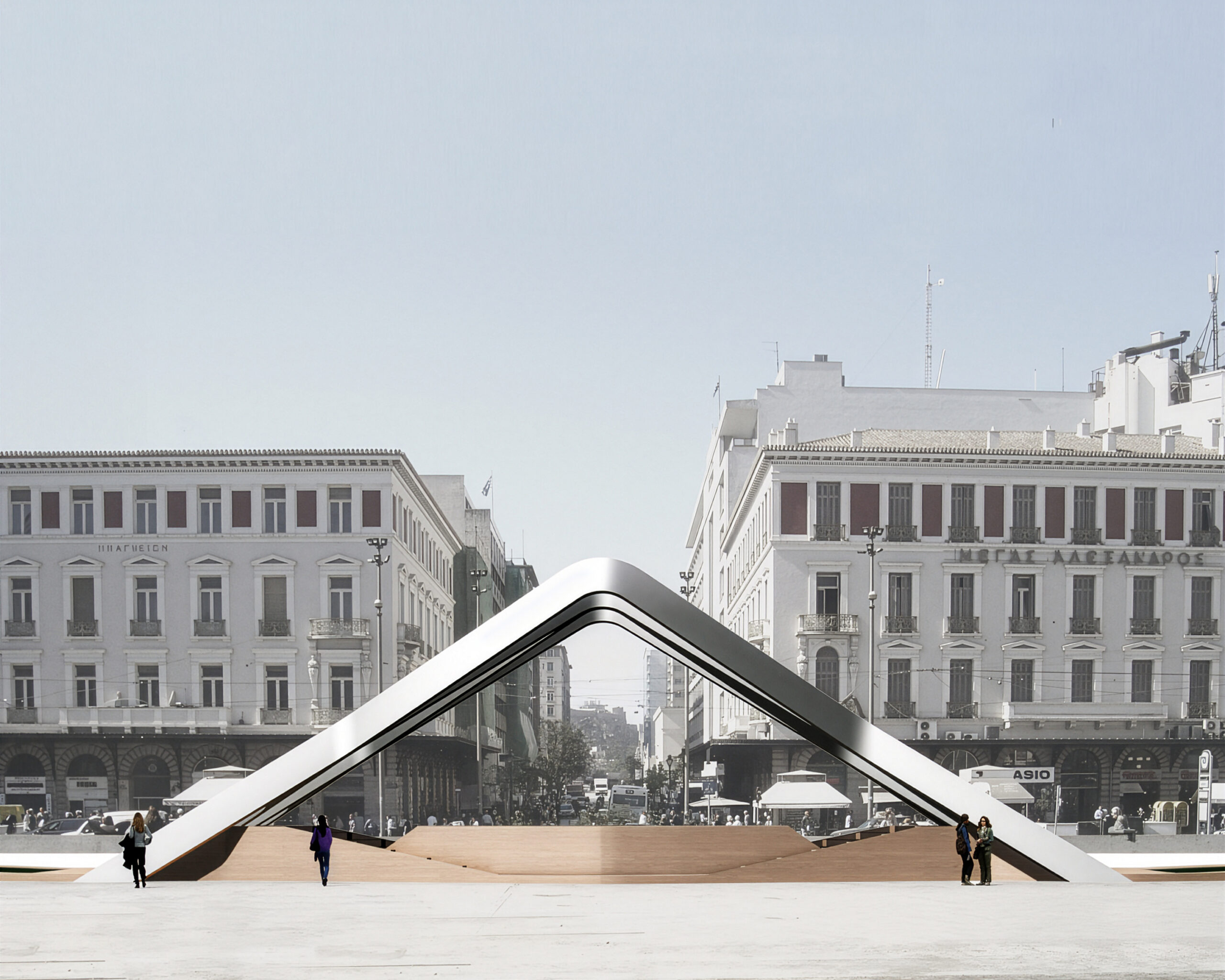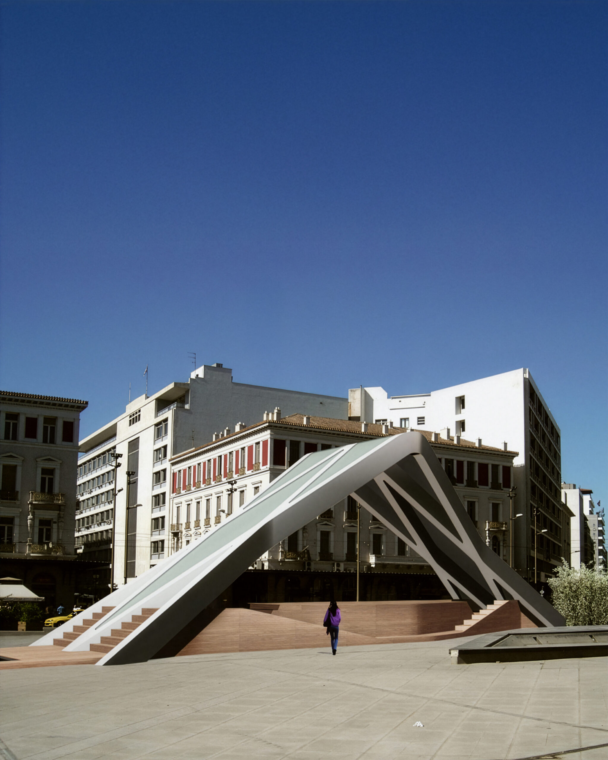 Defined by an open, landscape-like configuration, the pavilion was designed to be inhabited in multiple ways: offering shade during the intense summer heat, accommodating informal gatherings, and allowing visitors to ascend and enjoy views toward the Acropolis from its gently accessible roofscape.